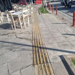 Ούτε καν τις διαδρομές των τυφλών δεν σέβονται , τοποθετώντας ακόμη και εκεί τραπέζια και καρέκλες.
