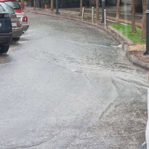 Ακόμη και οι δρόμους όπου υπάρχει δίκτυο ομβρίων ( φρεάτια) πλημμύρισαν λόγω του μεγάλου όγκου νερού που έπεσε.