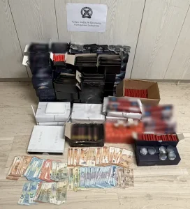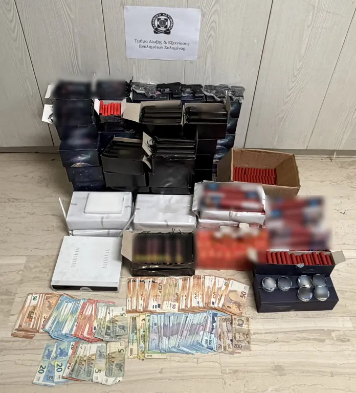 Πλήθος κροτίδων και φωτοβολίδων εντοπίστηκε από αστυνομικούς της Ο.Π.Κ.Ε. και του Τμήματος Δίωξης και Εξιχνίασης Εγκλημάτων Σαλαμίνας/Δ.Δ.Ε.Ε.Α./Γ.Α.Δ.Α. σε οικία στο νησί της Σαλαμίνας στο πλαίσιο της ειδικής δράσης με την ονομασία «Spark–Down»