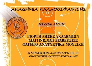 Την Κυριακή 22-6-2025 στο ανοιχτό γήπεδο στο Σχιστό Κορυδαλλού