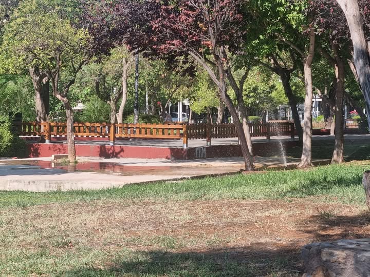 Επί ώρα έρρεε άσκοπα το νερό στην πλατεία Μέμου από το σύστημα ποτισμού που έχει τοποθετηθεί.