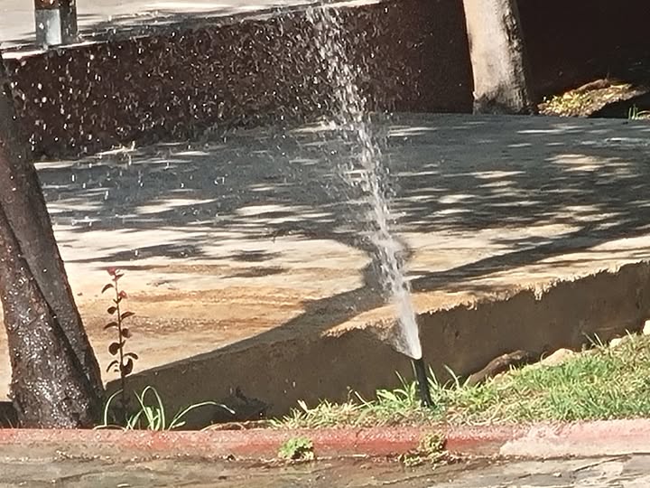Το νερό , όσο λειτουργούσε το ποτιστικό , αντί να ρίχνει το νερό στο γρασίδι του παρτεριού , όπου είναι τοποθετημένο , το έριχνε στα τσιμέντα.