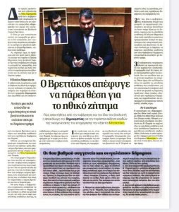 Ο Βρεττάκος απέφυγε να πάρει θέση για το ηθικό ζήτημα