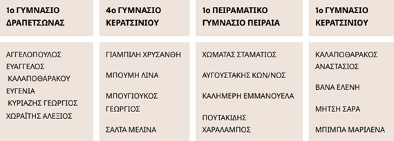 Τα ονόματα των βραβευθέντων μαθητών είναι :